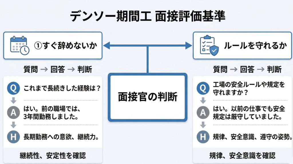 「デンソーの期間工の面接で、具体的に何を聞かれるんだろう…」